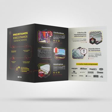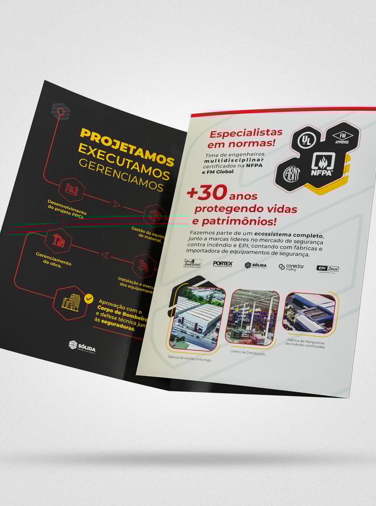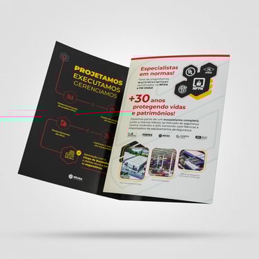 Design e diagramação de mídias impressas para comunicar a autoridade da marca e seus produtos e serviços.